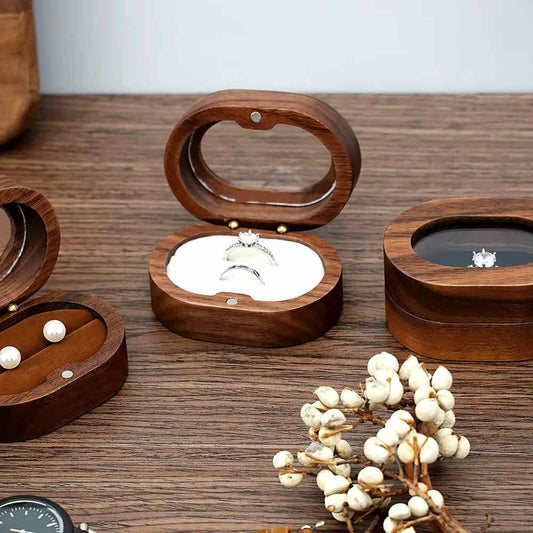 Oval Wooden Jewelry Ring Holder Box Engagement