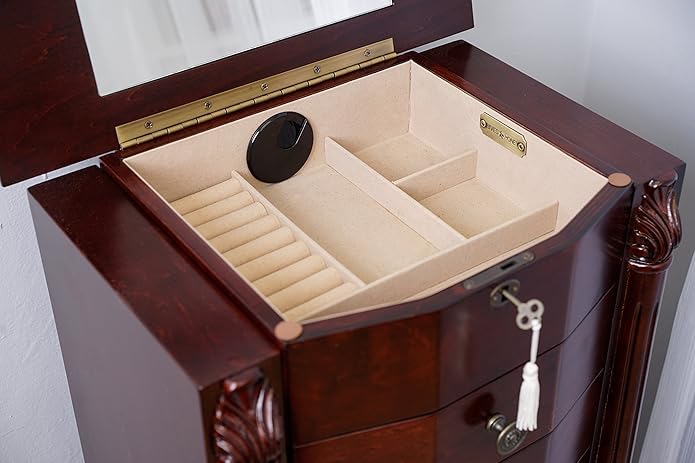 - Organized Storage: Features 8 anti-tarnish felt-lined drawers with divided compartments to keep jewelry protected and easy to find.